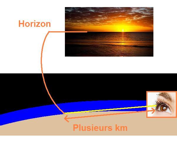 Si cubrimos la imagen del sol con nuestras manos, no veremos la luz verde porque la distancia entre las manos y los ojos es muy pequeña. Para que la dispersión se aproveche al máximo y sea visible como luz verde, se requieren varios kilómetros. Pero es cuando vemos la puesta de sol que el horizonte formado por el mar se encuentra a kilómetros de distancia. Esto obviamente depende de la altura del observador: en una duna, en lo alto de un edificio, etc. Unos pocos cientos de metros tampoco son suficientes: en la ciudad a lo lejos, no puedes ver el resplandor verde detrás de los edificios.